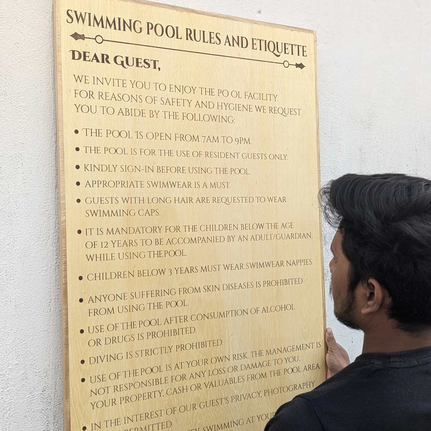 Customizable Large Wood Sign for Hotels & Cafes | Engraved Swimming Pool Safety Board