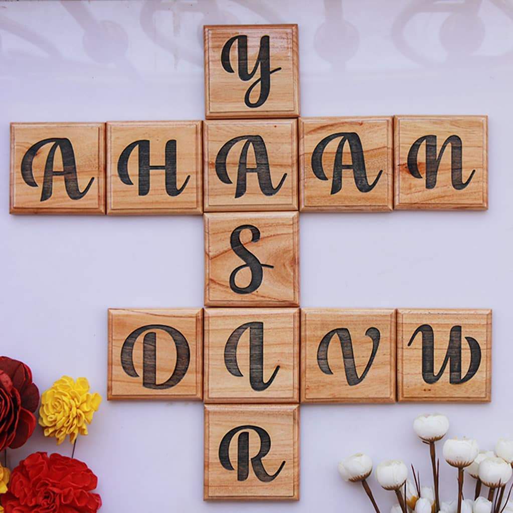 - Choose the number of wooden tiles you require. You can enter only one character/letter per tile. Enter the characters or letters you want to be engraved. Please do not add space between the alphabets.