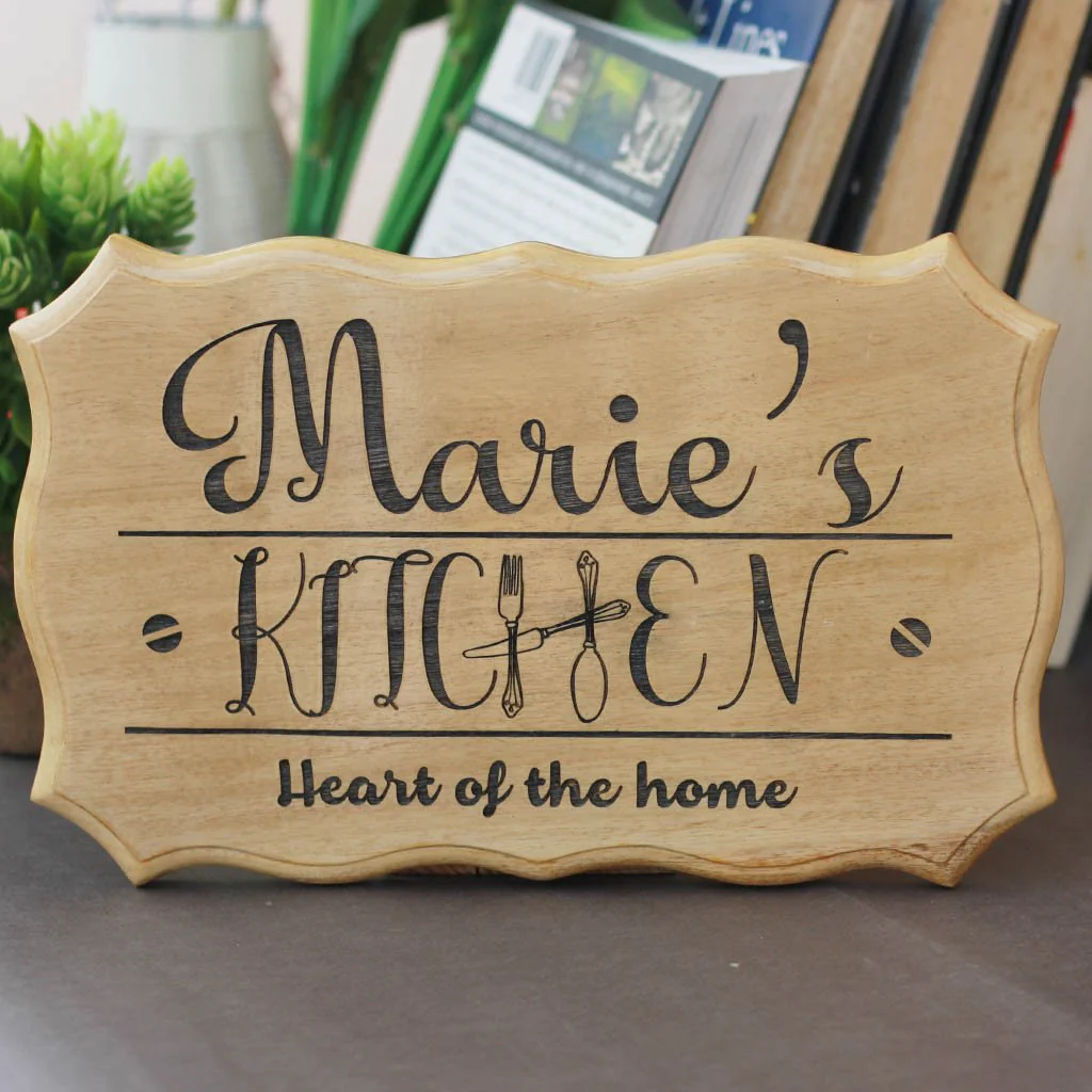 Your kitchen is the heart of your home. It is where you spend a large chunk of the day practicing and perfecting the art of cooking, deciding every day's menu and making finger licking food for your family. It is your workspace filled with energy, aroma and texture. It is where your family bonds, sometimes making meals together and sometimes engaging you in conversation while you cook. Nothing ever happens in this room without your knowledge. A personalized wooden kitchen sign engraved with your name is perfect custom wood wall sign for your kitchen.
